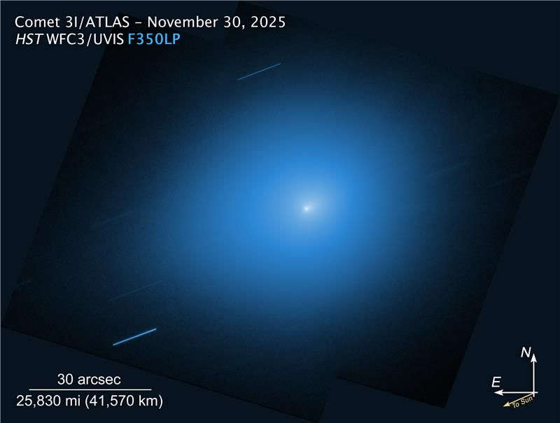 NASAのハッブル宇宙望遠鏡は11月30日に広視野カメラ3の機器で恒星間彗星3I/ATLASを再び観測した。その時、彗星は地球から約2億8,600万キロメートル離れていた。