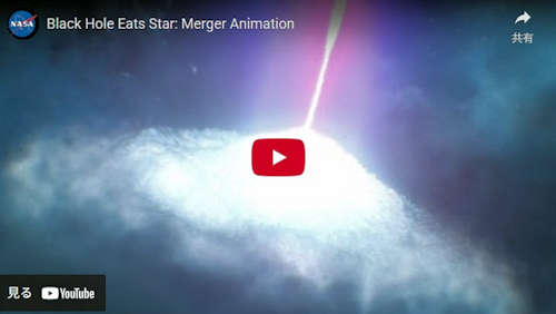 <イメージの説明>: 異常に長いガンマ線爆発は、通常の爆発よりも特殊な起源を必要とする。このアニメーションは、GRB 250702Bの一つの説明案を示している。すなわち、恒星質量ブラックホールとそのコンパニオンの星の合体である。ブラックホールが最後の数周を回る際に、星から大量のガスを引き出す。この過程のある時点で、システムはX線で明るく輝き始める。その後、ブラックホールが主天体に入ると、星の物質を急速に消費し、ガンマ線ジェット(マゼンタ)を外側に放ち、星を爆発させる。