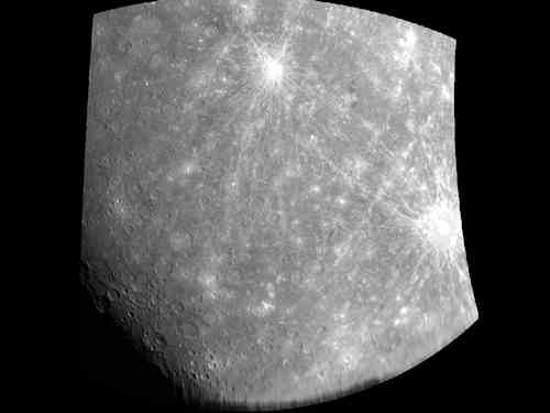 ここでは水星探査衛星メッセンジャー(MESSENGER:MErcury Surface, Space ENvironment, GEochemistry and Ranging)の、2011年3月24日の水星軌道周回開始後のデータを紹介しています。<お断り>: 水星の地名は、画家、小説家、音楽家などの世界中の文化人の名前からとられています。たとえば日本人では、葛飾北斎、丸山応挙、夏目漱石など多数の名前が使われています。人名なので外国人の場合にはどのように読むのか分からないことが多くあります。確認できる限りカナ文字で表記していますが、不能な場合は原文そのままで記載しますのでご了解ください。