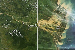 例えば、2015年の例外的なエルニーニョ現象の際には、陸地の降水量が少ないと河川の流量が平均して減少し、その結果、海岸から200キロメートル離れた地域で塩分濃度が著しく上昇したという、地球規模の水循環の影響が追跡された。