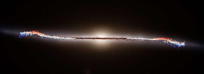 ミルキウェイ銀河は決してじっとしているわけではなく、回転し、ぐらついている。ヨーロッパ宇宙機関のガイア(Gaia)宇宙望遠鏡のデータによって、今、我々の銀河にも、その中心から外側に向かって波打つ巨大な波があることが明らかになった。 |