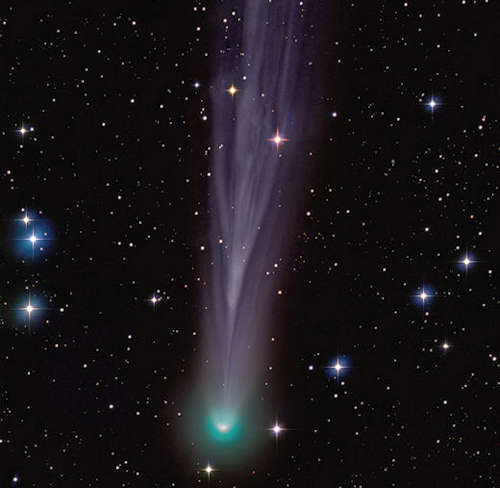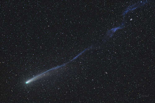 ほとんどの彗星は緑であり時には青である。カリフォルニア州のアマチュア天文学者のダン・バートレットが珍しい金色の彗星、アトラス彗星 (C/2025 K1) を追っている。 |