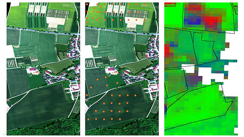 左側には、2025年5月12日に撮影されたプッチテストエリアの高解像度HySpexイメージが、真の色(true colour)で描かれている。 |