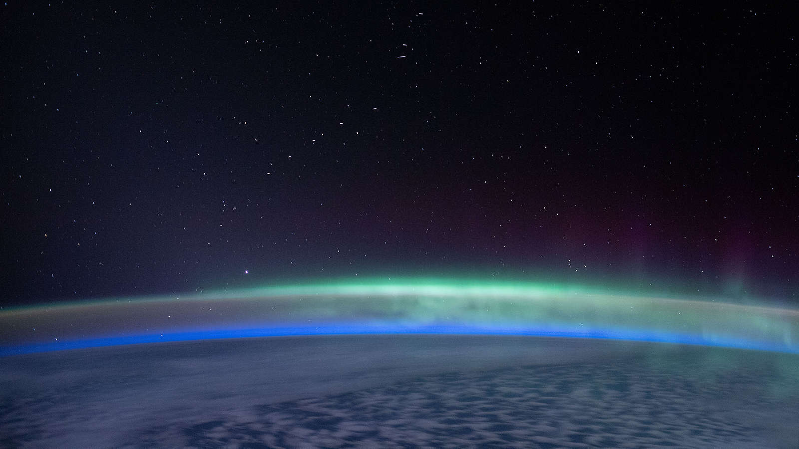 国際宇宙ステーションがインド洋を周回する中、地球の輝きが「オーロラオーストラリス」と混ざり合っている。 |