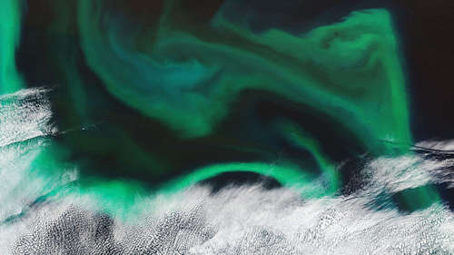 コペルニクスセンチネル2ミッションは、日本の沖合の太平洋に渦巻く藻類の花を見た。ズームインして10メートルの解像度で詳細を見よう。 |