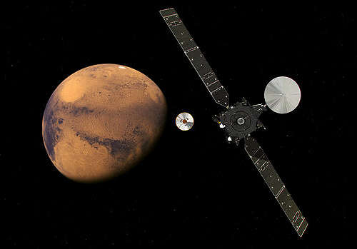 このページでは2016年に打ち上げられたヨーロッパ宇宙機関の火星探査衛星エクソマーズガス追跡軌道船(TGO)による火星軌道からのイメージをご紹介しています。この軌道船は、火星の大気のガスの詳細な目録をつくり、その発生源を知るためのメタンの地理的・季節的依存性の調査を主な目的にしています。
