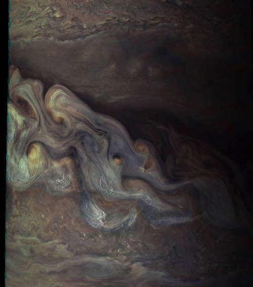 NASAのジュノ宇宙船で得られた木星の雲の一層近い視界。