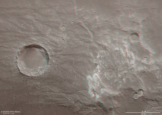 このページでは2003年に打ち上げられたヨーロッパ宇宙機構の火星探査衛星マーズエクスプレス軌道船による火星軌道からのイメージをご紹介しています。マーズエクスプレスからのデータはNASAの軌道船に比べて精度では劣りますが、搭載されている高精細ステレオカメラ(HRSC;High-Resolution Stereo Camera)にはNASAの軌道船には見られない特徴があります。このページでは立体画像を中心に掲載します。なお、掲載は不定期です。