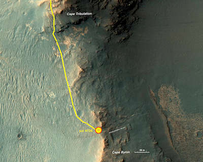 オポチュニティは、2011年から、エンデバーと名付けられた幅22キロメートルのクレータの西の縁を調査してきた。今冬、オポチュニティは、クレータの縁を西から東へ切っている「マラソン谷」の南の側で岩を調べている。ここは、NASAの火星偵察軌道船(MRO)による観測で、湿った、非酸性の環境の下で生じた粘土鉱物の濃度をマップした場所である。
