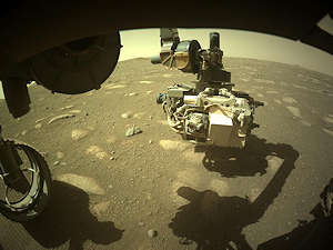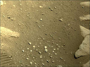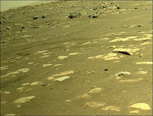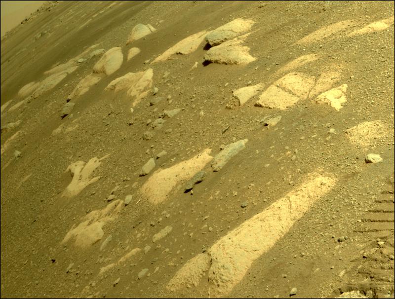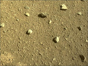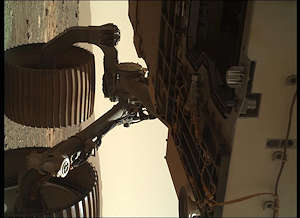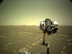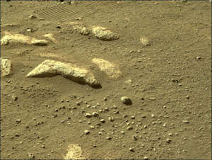 この写真は、パーサービアランスローバーミッションの7週目(3月28日~ 4月3日)の「今週のイメージ」として、公開の投票によって選ばれた。NASAの火星パーサービアランスローバーは、ローバーのロボットアームの終端のタレットにあるワトソンカメラを使ってこのイメージをとった。