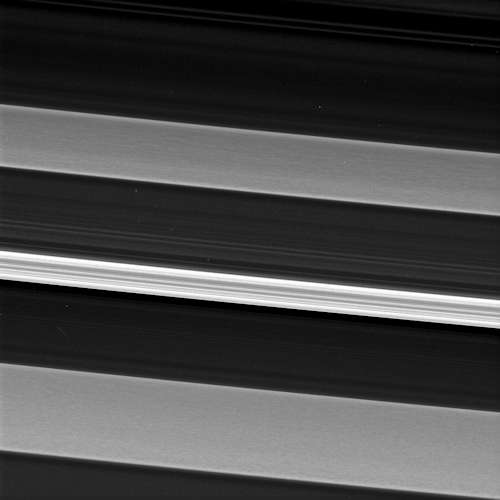 土星のリングのこのイメージは、2017年9月13日に、NASAのカッシーニ宇宙船によってとられた。これはカッシーニが地球に送り返した最後のイメージの一つである。この視界は、土星から110万キロメートルで、カッシーニ宇宙船の広角カメラの可視光線の赤を用いてとられた。